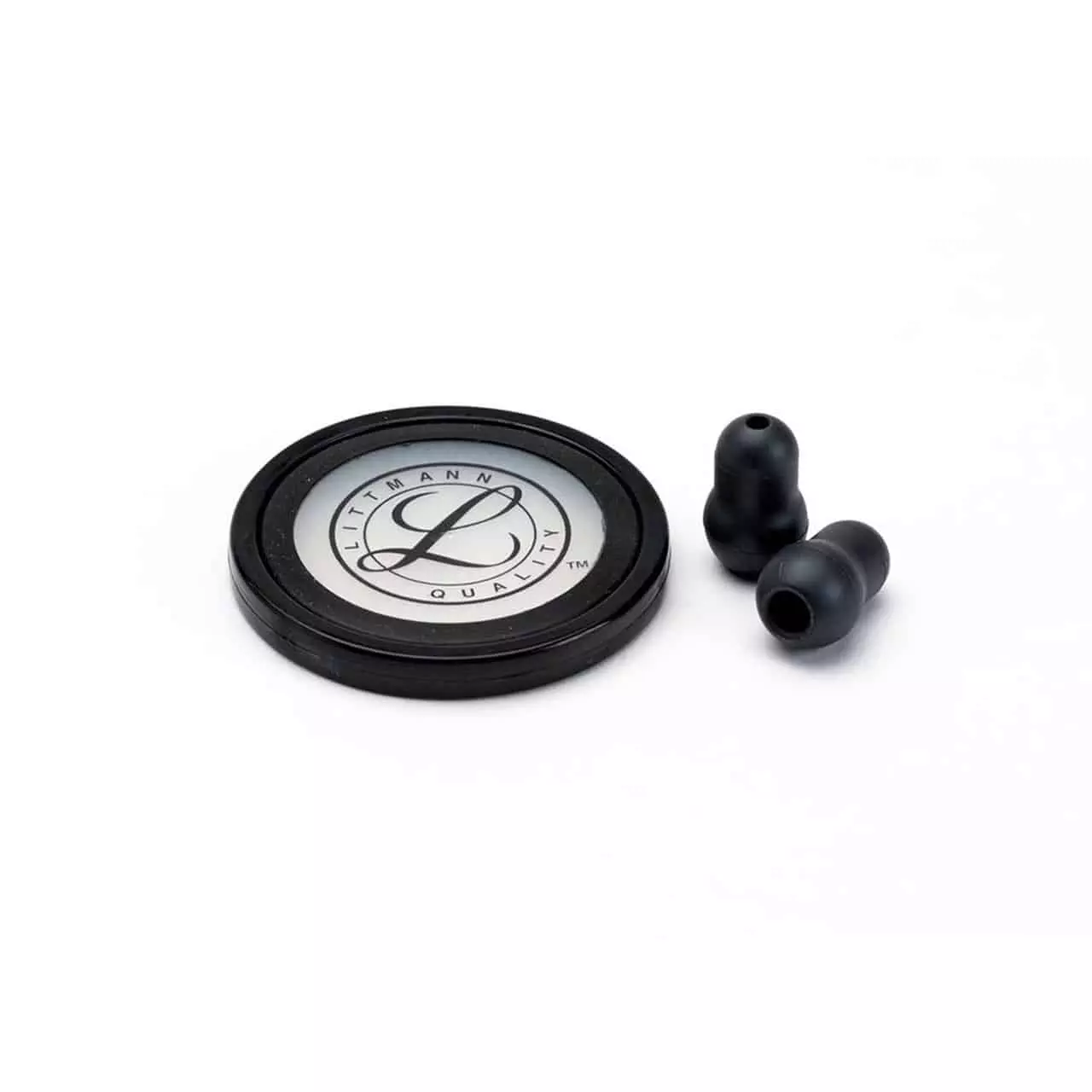3M™ Littmann® Stethoscope Spare Parts Kit for the Master Cardiology™ Stethoscope contains a black rim and tunable diaphragm for chestpiece, in addition to two small (1/2 inch), black Snap Tight Soft-Sealing Eartips.