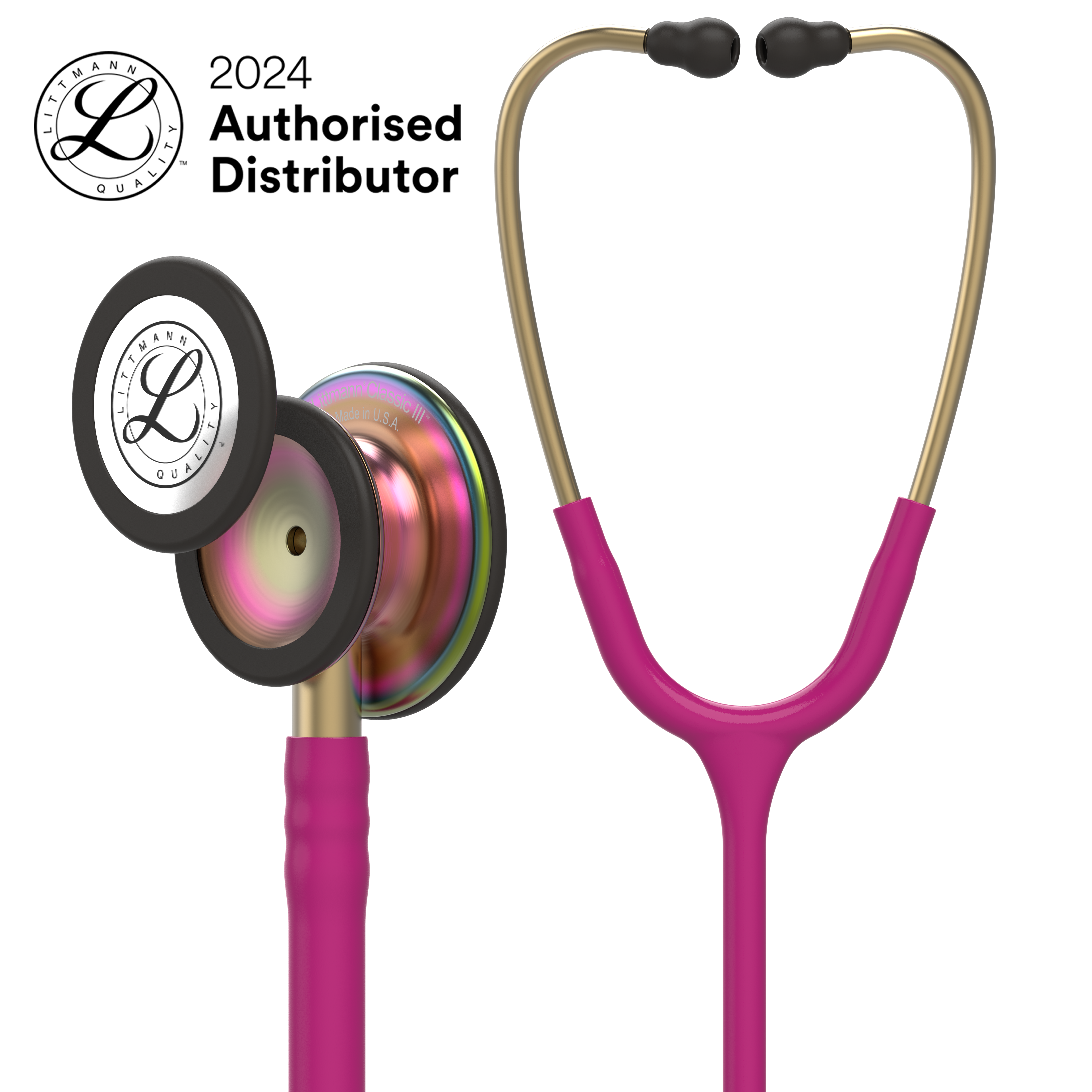 Discover the 5806 Littmann Classic III Raspberry Rainbow Finish Stethoscope, a breakthrough in stethoscope technology. As the latest iteration in the renowned Littmann series, this brand new model sets a new industry standard, perfect for those looking to buy a stethoscope that’s both innovative and reliable.