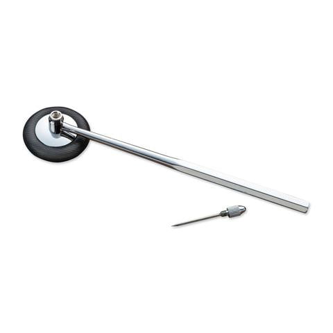 Babinsky type patella hammer with octagonal chrome handle with a pointed tip. Head may be used in horizontal or vertical positions.