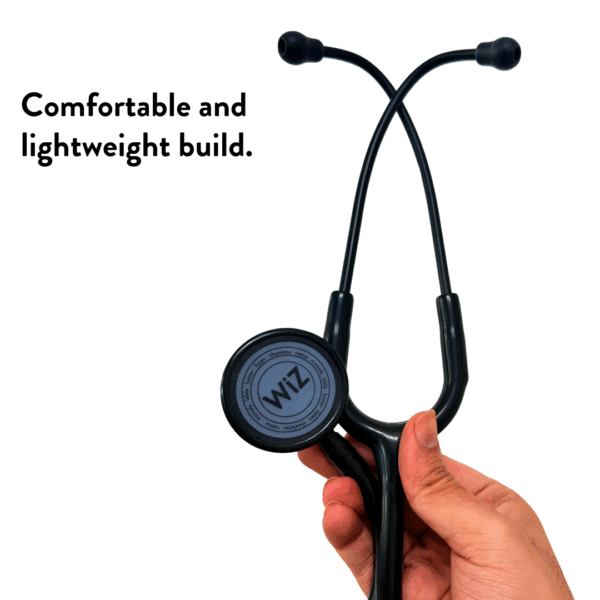 The WiZmed Stethoscope — a modern dual-head scope engineered for clear, confident auscultation. Adjustable-frequency diaphragm (light pressure for low tones, firm for high) paired with a precision-machined stainless-steel chestpiece and resilient single-lumen tubing for crisp acoustics.