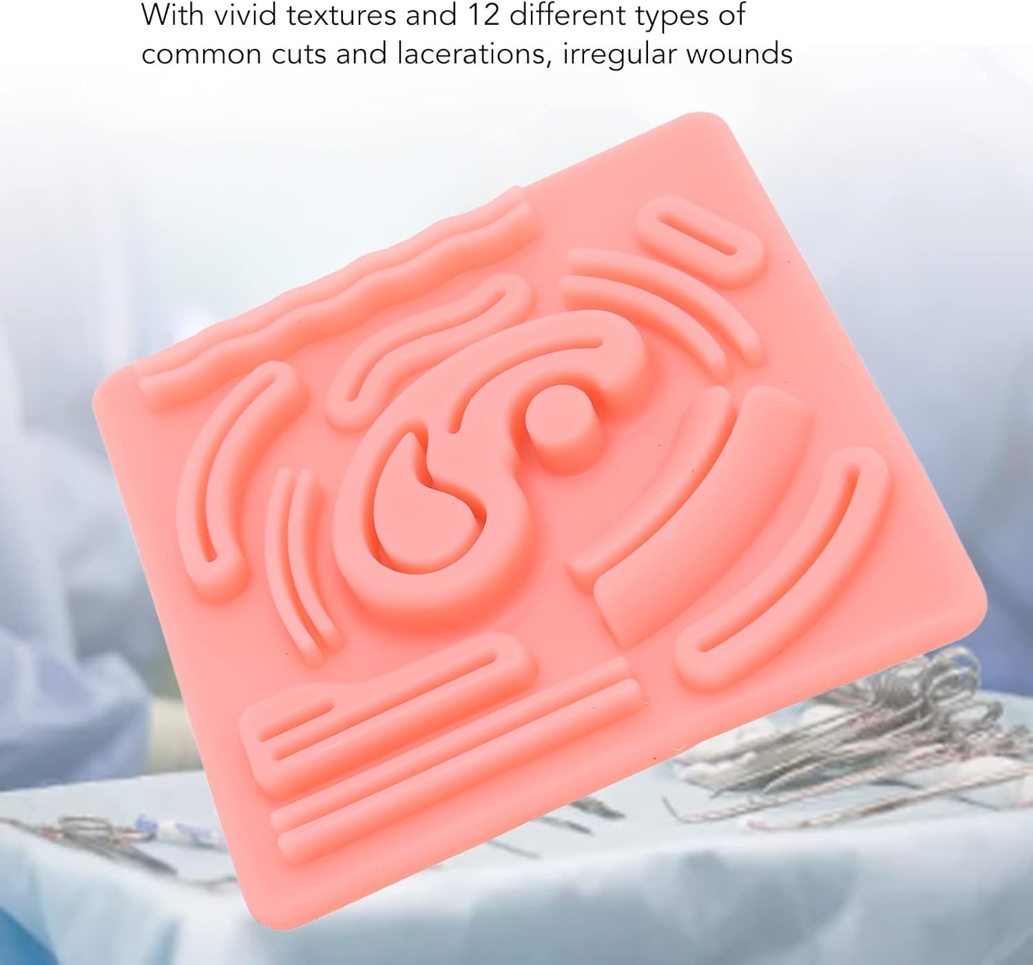 Made from non-toxic medical-grade silicone, this pad simulates the look, feel, and resistance of abdominal tissue layers. The raised and curved wound patterns allow you to practise different incision depths, angles, and suturing techniques, closely mimicking real-life scenarios encountered in skills labs, OSCE prep, and early clinical rotations.